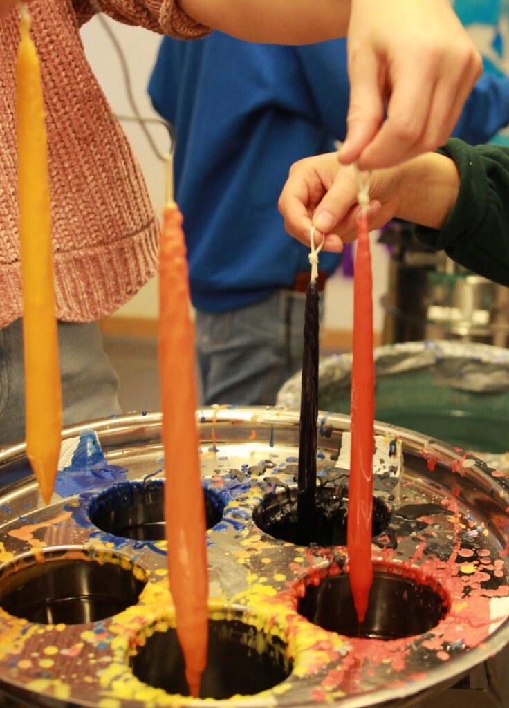 Unter dem Motto «Gut Ding will Weile haben» entstehen alljährlich von über 20 Schulklassen/Gruppen und vielen weiteren Interessierten wunderbare farbige Kerzenkreationen. Ein motiviertes Freiwilligenteam steht Jung und Alt mit Rat und Tat zur Seite.